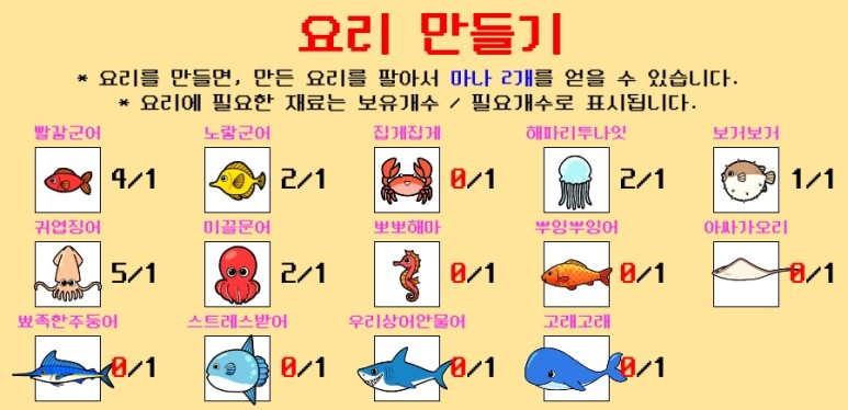 물고기를 요리하면 마나 물약을 얻을 수 있다.